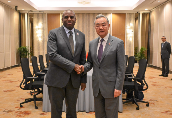 王毅表示,在习近平主席同斯塔默首相战略引领下,中英关系走上改善发展的正轨。双方要重拾战略伙伴初心,把握互利合作大势,坚持相互尊重,妥善处理分歧,回应两国各界期待。今年是二战胜利80周年。作为战后秩序的共同缔造者和联合国安理会常任理事国,中英还应共同履行国际义务,捍卫二战胜利成果,维护自由贸易体制,为世界和平与发展作出新的贡献。